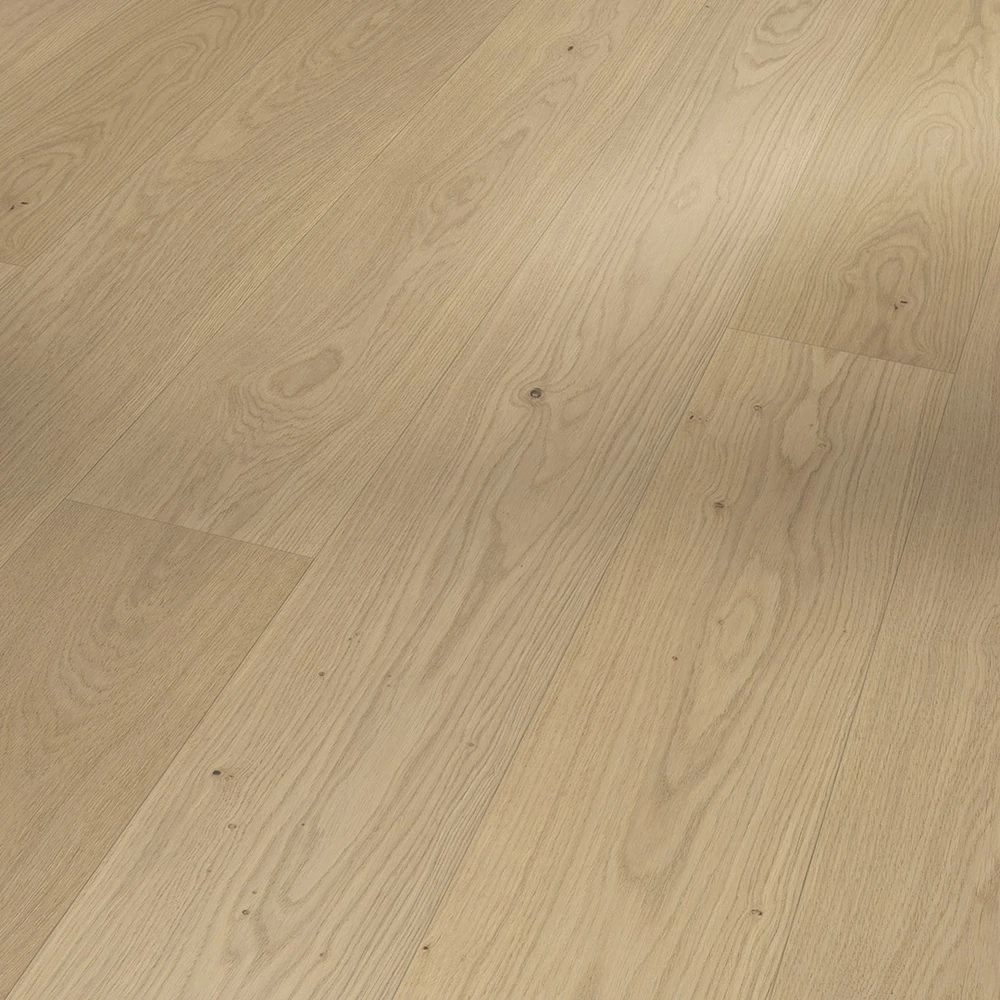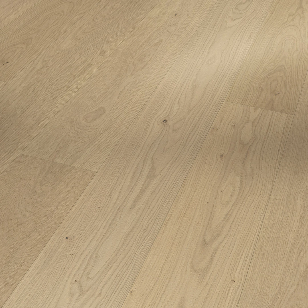 A Classic 3060 termékcsaládba tartozó, csiszolt tölgyfa Natur széles padlóburkolat a legmagasabb design- és minőségi igényeket is kielégíti, és a tervezési igények széles skáláját képes kielégíteni. A kiváló minőségű, rendkívüli extra matt lakkfelülettel rendelkező, parkettás padló különleges és természetes hangulatot teremt minden nappaliban. A kompromisszummentes minőségű padlóburkolatok 2200 x 185 x 13 mm méretben kaphatók széles padlóburkolatként. A négyoldalú mikrofózolás diszkréten kiemeli az egyes padlóburkolatokat, így kiemeli a fapadló természetes minőségét. A tartós és stílusos Parador Classic 3060 parkettás padlóburkolat könnyen telepíthető az Automatic-Click rendszernek köszönhetően, amely hosszú és végél-rögzítéssel rendelkezik. A lamellák és a fedőrétegek körkörös impregnálása megbízható védelmet nyújt a duzzanat ellen. A fedőréteg kb. 3,6 mm magas. Ez a parkettás padlóburkolat alkalmas padlófűtési rendszerekre. A gyártó garanciája (a Parador garanciális feltételei szerint) 25 év. A Classic 3060 termékcsalád Parador parkettáinak gyártásához túlnyomórészt fenntartható forrásból származó fát használnak. A Parador parkettái számos tanúsítvánnyal rendelkeznek.