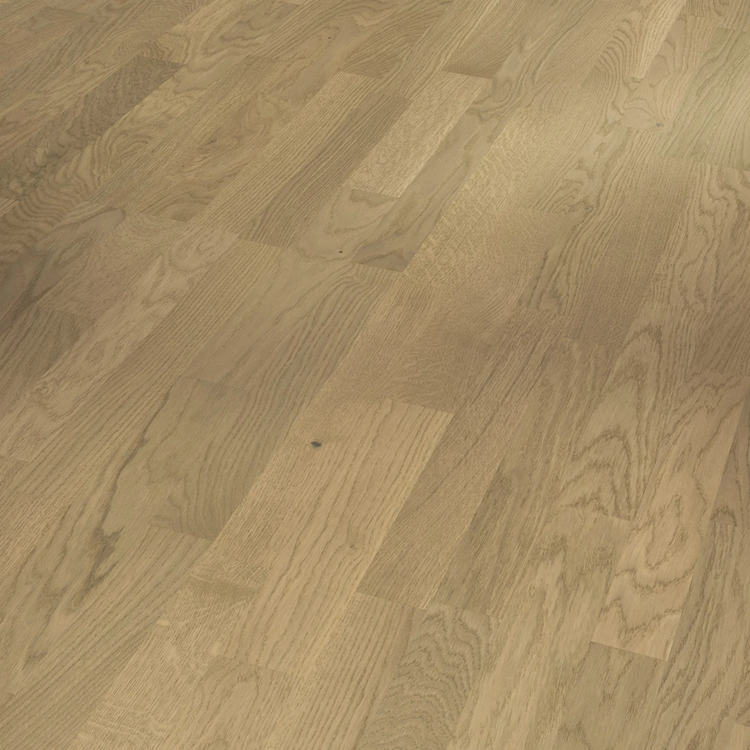 A Basic 11-5 termékcsaládba tartozó, világos fehérre meszelt, 3-sávos Parador parketta, Oak Malbec színű, tömörfa felső réteggel. Ez a vonzó, matt fehér lakkozású tömörfa felső réteg ártudatos belsőépítészetet tesz lehetővé egyedi és kiváló minőségű parketta formájában. Ez a meggyőző, természetes termék a mindennapi használatra alkalmas és könnyen karbantartható, széleskörű tervezési lehetőségeket kínál. A Basic 11-5 termékcsaládba tartozó Parador parketta 3-sávos kivitelben kapható 2200 x 185 x 11,5 mm méretben. A pallók kialakítása nem rendelkezik ferdékkel, így a pallók észrevehető hézagok nélkül illeszkednek egymáshoz, egységes és harmonikus fektetési mintát hozva létre. A Rustikal kollekció göcsös megjelenésének, hangsúlyos színjátékának és jellegzetes erezetének köszönhetően különösen eredeti megjelenésű. A Basic 11-5 Parador parketta Automatic-Click rendszerrel rendelkezik, és könnyen telepíthető – többek között az alacsony, 11,5 mm-es fektetési magasságnak köszönhetően is. A felső réteg körülbelül 2,5 mm magas. A rétegelt parketta padlófűtésre is alkalmas. A teljes felületű lamelláknak és a fedőréteg impregnálásának köszönhetően megbízható duzzadás elleni védelemmel rendelkezik. A gyártó tíz év garanciát vállal rá.