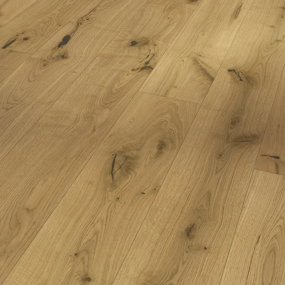 A Classic 3025 termékcsalád Parador Oak Chianti natúr széles padlóburkolata széleskörű designlehetőségeket kínál a magas design- és minőségi igényeket támasztóknak. A klasszikus designú, natúr olajjal és felületkezeléssel ellátott padlóburkolat stílusos alapot képez a lakóterek kialakításában. A Character kollekció eredeti, rusztikus fa megjelenést kölcsönöz, nagyobb csomókkal és feltűnő szín- és textúrakülönbségekkel. A 4 oldalú mikrofózolás diszkréten megszakítja a lerakott padlóburkolatok megjelenését, így kiemeli a parketta eredeti jellegét. A Classic 3025 termékcsalád Parador Oak Chianti natúr parketta széles padlóburkolatként kapható 2200 x 185 x 13 mm méretben. A Classic 3025 Parador parketta minőségben kompromisszumok nélküli, körbefutó lamellákkal és fedőréteg impregnálással rendelkezik. A fedőréteg 2,5 mm magas. Ez a parketta alkalmas padlófűtésre és padlóhűtésre való fektetésre. A hosszanti és végél-reteszelő automatikus klikkrendszernek köszönhetően könnyen és biztonságosan telepíthető. Erre a padlóra 25 év gyártói garancia vonatkozik (a Parador garanciafeltételeinek megfelelően). A Classic 3025 termékcsaládba tartozó Parador parkettáinak gyártásához túlnyomórészt fenntartható forrásból származó fát használnak. A Parador parkettái számos tanúsítvánnyal rendelkeznek.