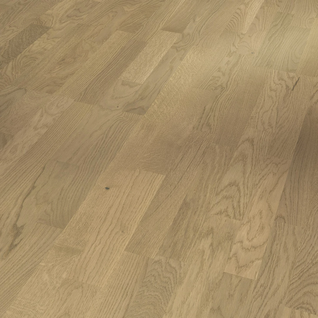 A Classic 3025 termékcsaládból származó, világos fehérre meszelt, 3-sávos Parador parketta széleskörű designlehetőségeket kínál a magas design- és minőségi igényeket támasztóknak. A klasszikus designú, matt fehér lakk felületű padlóburkolat stílusos alapot képez a lakóterek kialakításában. A Rusztikus kollekció göcsös megjelenésének, hangsúlyos színjátékának és jellegzetes erezetének köszönhetően különösen eredeti hatást kelt. A pallók kialakítása ferde, így a pallók észrevehető hézagok nélkül illeszkednek egymáshoz, egységes és harmonikus lerakási mintát hozva létre. A Classic 3025 termékcsaládból származó, világos fehérre meszelt, 3-sávos Parador parketta 2200 x 185 x 13 mm méretben kapható. A Classic 3025 termékcsaládból származó, világos fehérre meszelt, 3-sávos változatban kapható. A minőség terén kompromisszumok nélküli, körbefutó lamellákkal és fedőréteg impregnálással rendelkezik. A fedőréteg 2,5 mm magas. Ez a parketta alkalmas padlófűtésre és padlóhűtésre való lerakásra. Könnyen és biztonságosan telepíthető a hosszanti és a végéleken is záródó automatikus klikkrendszernek köszönhetően. Erre a padlóra 25 év gyártói garancia vonatkozik (a Parador garanciafeltételeinek megfelelően). A Classic 3025 termékcsaládba tartozó Parador parkettáinak gyártásához túlnyomórészt fenntartható módon kezelt forrásból származó fát használnak. A Parador parkettái számos tanúsítvánnyal rendelkeznek.