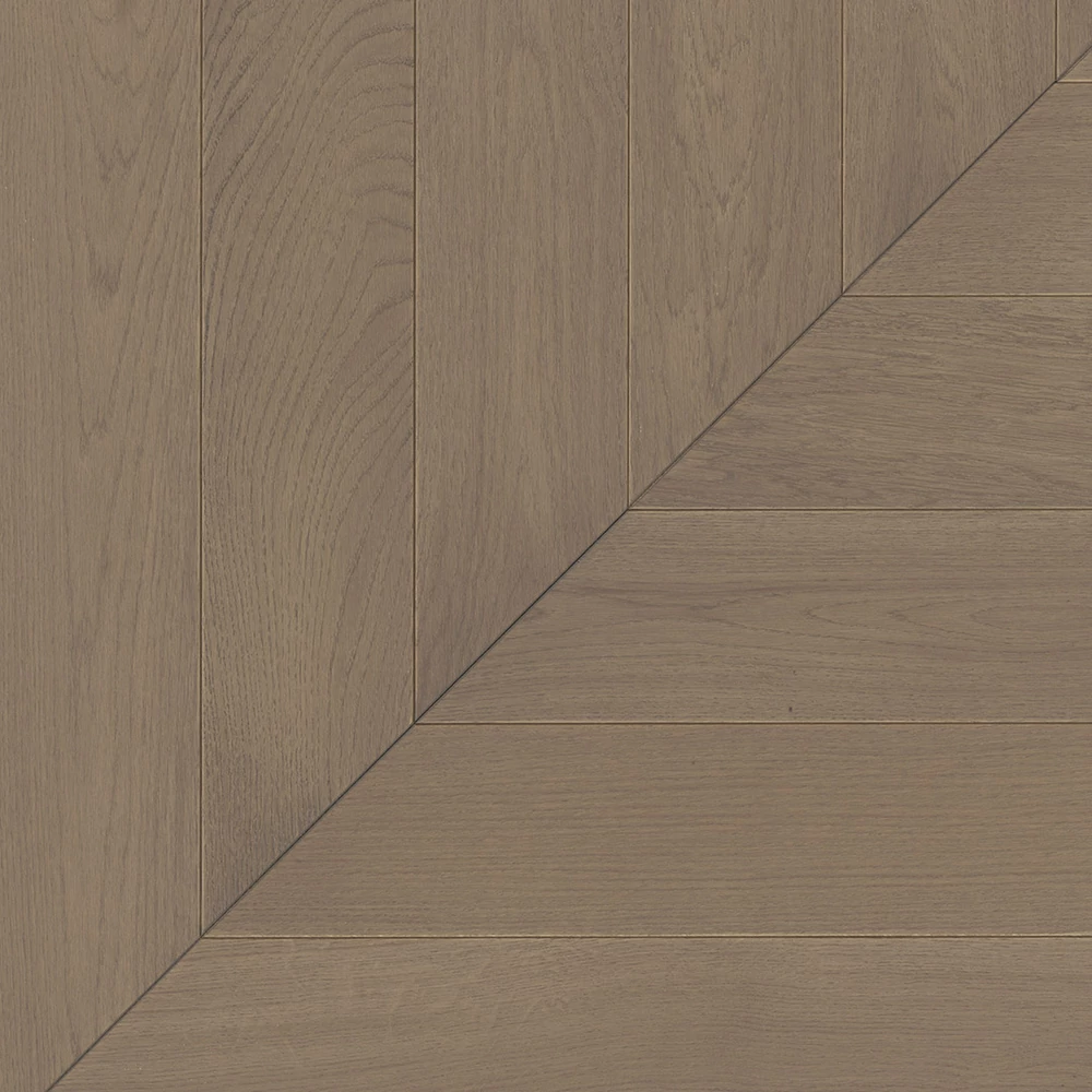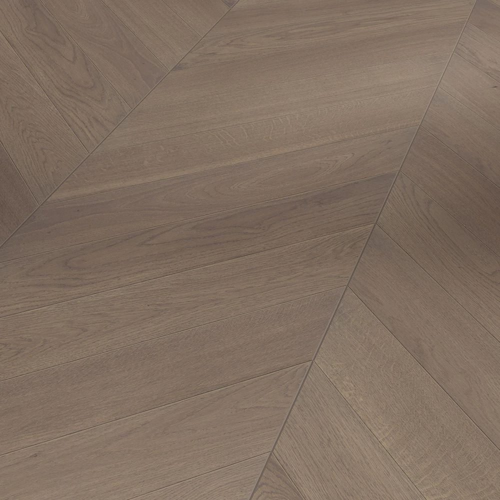 A Parador Chevron tölgyfa parketta különösen kreatív kialakítási lehetőséget kínál egyedi életterek számára, igényes nappali hangulattal. A rétegelt parketta a hagyományos francia halszálkamintát követi, amely a padlódesign egyik abszolút trendje. Tartós és stílusos, a kiváló minőségű tölgyfából készült tömörfa fedőréteggel ellátott parketta vizuálisan különösen nemes. A 610 x 90 x 15 mm méretű pallók balos és jobbos pallóként kaphatók, így lehetővé teszik ennek a szokatlan lerakási mintának a hiteles megvalósítását. A természetes választék hozzájárul a harmonikus, természetes megjelenéshez. A matt lakkal kezelt felület ezenkívül védi a padlót. A 4 oldalú mikrofózolás kiemeli a padló természetességét és kiemeli az egyes pallókat. Az eredmény egy harmonikus lerakási minta. A tartós csatlakozási stabilitáshoz teljes felületű ragasztás, valamint szakember általi lerakás szükséges. A körbefutó nútféderes illesztés megkönnyíti a ragasztóágyba történő lerakást, és lehetővé teszi a zökkenőmentes, folyamatos lerakást. A körbefutó lamella és fedőréteg impregnálása megbízható védelmet biztosít a duzzanat ellen. A fedőréteg magassága kb. 3,5 mm. Ez a rétegelt fa padlóburkolat padlófűtéses rendszerekre is alkalmas. A Parador által biztosított garanciaidő 25 év. A Parador chevron rétegelt fa padlóburkolat gyártásához főként fenntartható módon kezelt forrásból származó fát használnak. A Parador rétegelt faanyag többszörös tanúsítvánnyal rendelkezik.