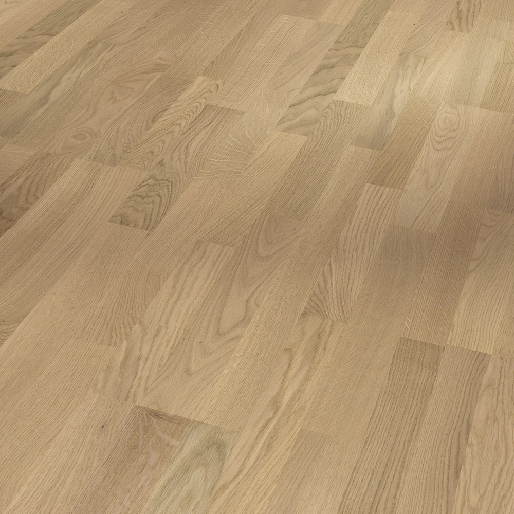 A Classic 3060 termékcsaládból származó, világos fehérre meszelt, 3-sávos Parador parketta megfelel a legmagasabb design- és minőségi igényeknek, és a tervezési igények széles skáláját képes kielégíteni. A kiváló minőségű, matt fehér lakkbevonatú parketta különleges és természetes hangulatot teremt minden nappaliban. A kompromisszummentes minőségű padlóburkolatok 3-sávos kivitelben, 2200 x 185 x 13 mm méretben kaphatók. A Natur választék a legjobb alapot nyújtja a természetes és eredeti összhatás eléréséhez. A padlóburkolatok kialakítása fózolás nélküli, így a padlóburkolatok észrevehető hézagok nélkül illeszkednek egymáshoz, egységes és harmonikus fektetési mintát hozva létre. A tartós és stílusos Parador Classic 3060 parketta könnyen telepíthető az Automatic-Click rendszernek köszönhetően, amely hosszú és végél-rögzítéssel rendelkezik. A lamellák és a felső rétegek körkörös impregnálása megbízható duzzadásvédelmet biztosít. A felső réteg körülbelül 3,6 mm magas. Ez a parketta alkalmas padlófűtésre. A gyártó 25 év garanciát vállal. A Classic 3060 termékcsalád Parador parkettáinak gyártásához túlnyomórészt fenntartható forrásból származó fát használnak. A Parador parkettái számos tanúsítvánnyal rendelkeznek.