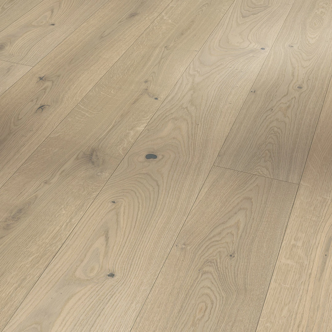 A Classic 3060 termékcsaládba tartozó, fehér, széles Parador tölgyfa padlóburkolat megfelel a legmagasabb design- és minőségi igényeknek, és a tervezési igények széles skáláját képes kielégíteni. A kiváló minőségű, matt fehér lakkozású padlóburkolat különleges és természetes hangulatot teremt minden nappaliban. A kompromisszummentes minőségű padlóburkolatok 2200 x 185 x 13 mm méretben kaphatók széles padlóburkolatként. A Living Plus kollekciót élénk megjelenés és földszínű fa jegyek jellemzik. A 4 oldalú mikrofózolás diszkréten megszakítja a lerakott padlóburkolatok megjelenését, így kiemeli a padlóburkolat eredeti jellegét. A tartós és stílusos telepítésű Parador Classic 3060 padlóburkolat könnyen telepíthető az Automatic-Click rendszernek köszönhetően, amely hosszú és végél-rögzítéssel rendelkezik. A lamellák és a fedőrétegek körkörös impregnálása megbízható védelmet nyújt a duzzadás ellen. A fedőréteg körülbelül 3,6 mm magas. Ez a padlóburkolat alkalmas padlófűtésre. A gyártó garanciája 25 év. A Classic 3060 termékcsalád Parador parkettáinak gyártásához túlnyomórészt fenntartható forrásból származó fát használnak. A Parador parkettái számos tanúsítvánnyal rendelkeznek.