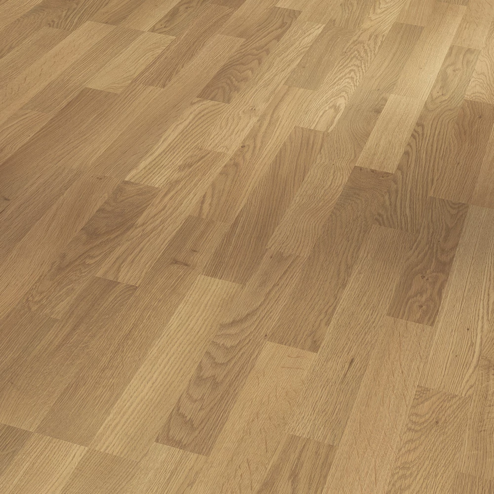 A Parador Basic 400 termékcsalád natúr tölgyfa laminált padlója 3 csíkos kivitelben, minden tekintetben lenyűgöző. Ez a laminált padló kifinomult érzetet kelt, tartós és megfelel a legmagasabb terméktervezési szabványoknak. 3 csíkos, 1285 x 194 x 8 mm-es változatban kapható. Az illesztésmentes kialakítás nyugodt, egységes összhatást kelt, mivel nem láthatók rések. A selymes matt textúra különösen természetes megjelenést kölcsönöz ennek a laminált padlónak. A nyugodt és harmonikus szerkezet vizuálisan a kezeletlen fára hasonlít. A Parador Basic 400 termékcsaládjának laminált padlói alacsony kibocsátású allergéneket tartalmaznak, tartósak, egészségesek az otthon számára, és kivételesen könnyen karbantarthatók. Padlófűtés fölé is lerakhatóak. A laminált padló beépítési magassága 8 mm. A szabadalmaztatott SafeLock® PRO klikkcsatlakozóval ellátott klikkmechanizmusnak köszönhetően ezek a padlók precízen és egyszerűen lerakhatók. A teljes felületű élimpregnálás megbízható védelmet nyújt a duzzanat ellen. A gyártó magánhasználatra tizenkét év garanciát vállal.